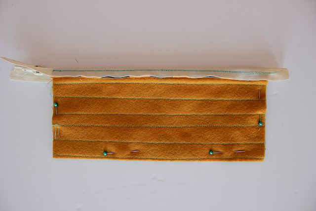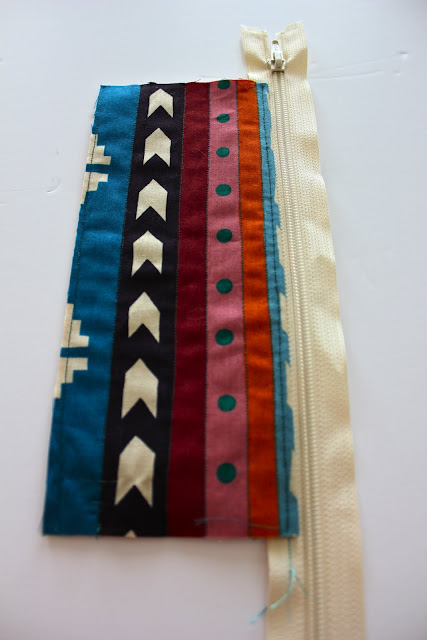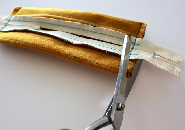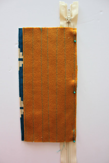 Fold the pouch so that the seam you just sewed is just below the line of the zipper.