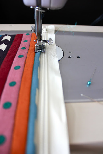 Now for the zipper. Don’t let this part scare you! You don’t need a special zipper foot. Just your regular old presser foot will do.
